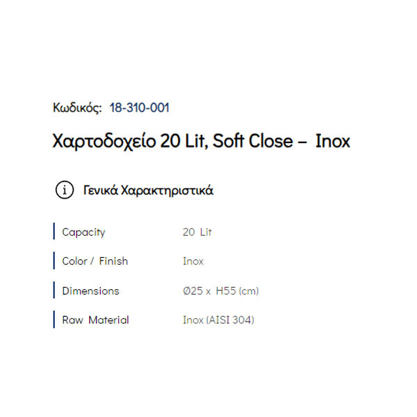• Δοχείο απορριμάτων μεταλλικό από ανοξείδωτο χάλυβα Inox (AISI 304)