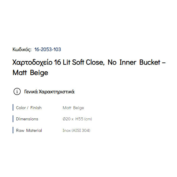 • Χωρητικότητα: 16 Lt