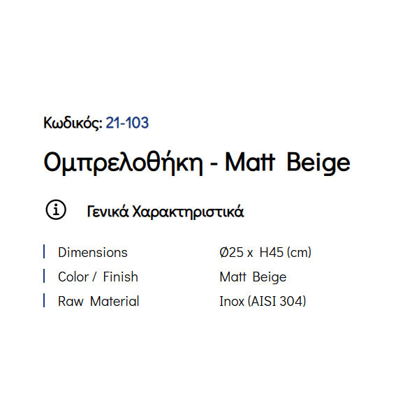 Pam Matt Beige 21-103 Ομπρελοθήκη