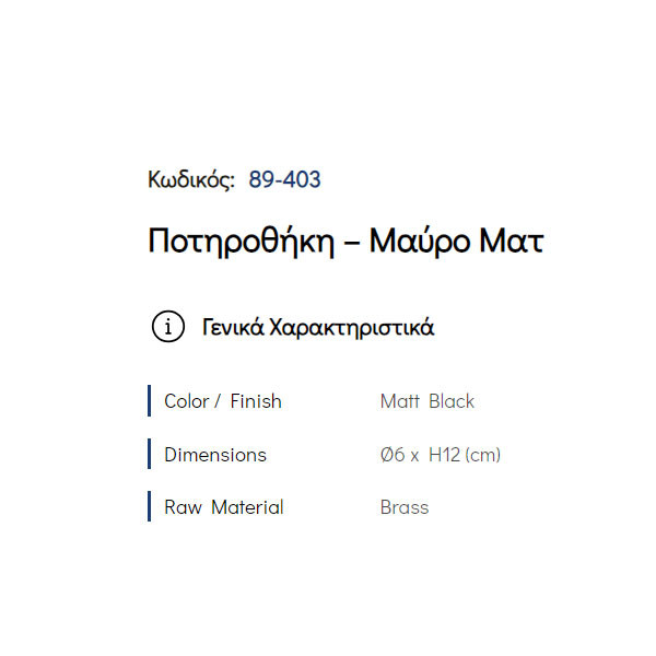 Pam Matt Black 89-403 Ποτηροθήκη Επικαθήμενη