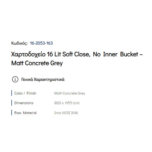 Pam Matt Concrete Grey 16-2053-163 Δοχείο Απορριμμάτων Κουζίνας 16 Lt