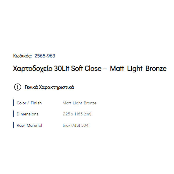 • Δοχείο απορριμάτων μεταλλικό από ανοξείδωτο χάλυβα Inox (AISI 304) και ηλεκτροστατική βαφή