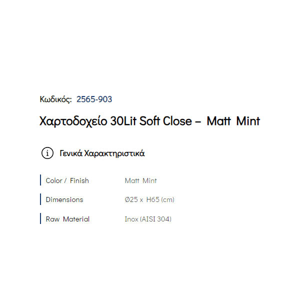 Pam Matt Mint 2565-903 Δοχείο Απορριμάτων Κουζίνας 30 Lt