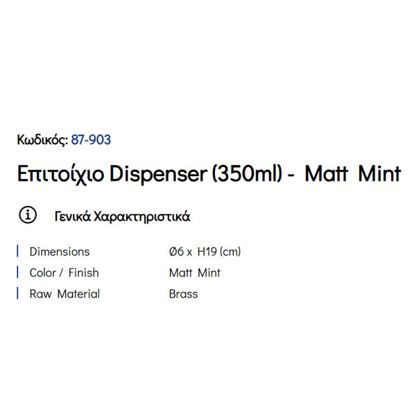 • Ντισπένσερ μεταλλικό ορειχάλκινο, με ηλεκτροστατική βαφή