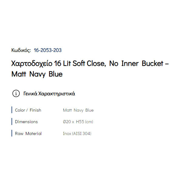 Pam Matt Navy Blue 162053-203 Δοχείο Απορριμμάτων Κουζίνας 16 Lt