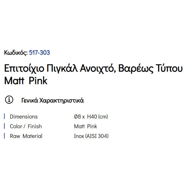 • Διάσταση: Ø 8 x 40 cm