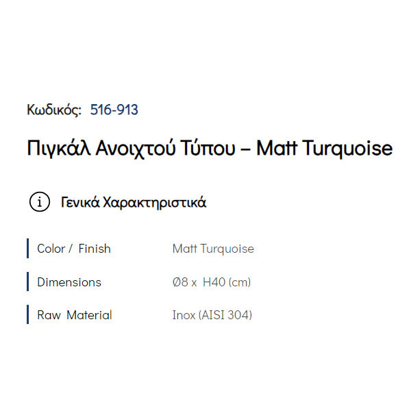 • Πιγκάλ μπάνιου δαπέδου ανοιχτού τύπου χωρίς καπάκι, από ανοξείδωτο χάλυβα Inox (AISI 304), ηλεκτροστατικά βαμμένο, ανθεκτικό στην οξείδωση