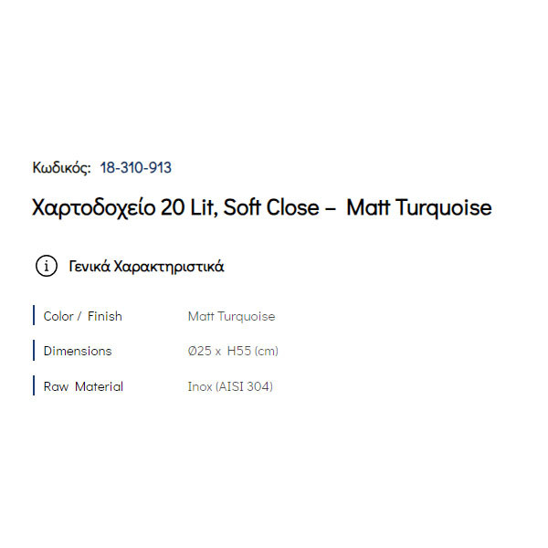 Pam Matt Turquoise 18-310-913 Δοχείο Απορριμάτων Κουζίνας 20 Lt