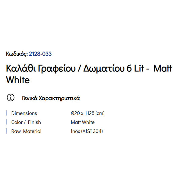 Pam Matt White 2128-033 Καλάθι Γραφείου & Δωματίου