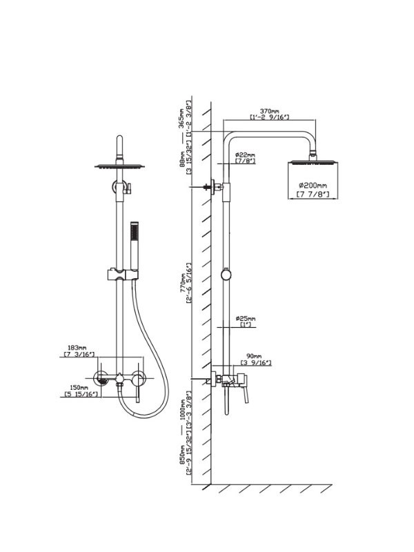 • Μπαταρία σταθερού ντους, κομπλέ με μονό μίκτη