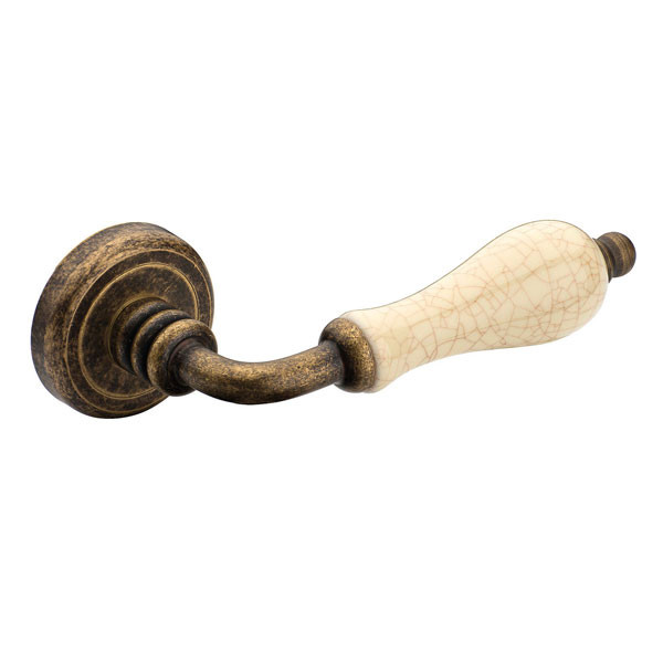 • Πόμολο φιξ εξωθύρας σε ροζέτα, χρώματος αντικέ και πορσελάνη με σχέδιο κρακελέ