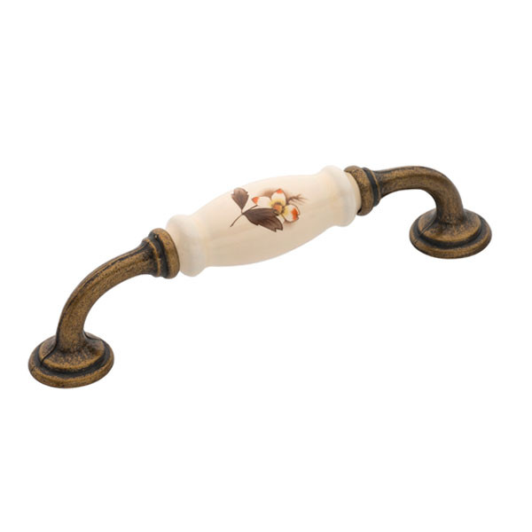 • Λαβή επίπλου χρώματος αντικέ και πορσελάνη με σχέδιο καφέ