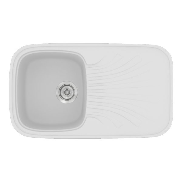 • Ένθετος συνθετικός νεροχύτης σε λευκό χρώμα, αντιστρεφόμενος