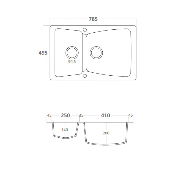 • Ένθετος συνθετικός νεροχύτης σε λευκό χρώμα, αντιστρεφόμενος