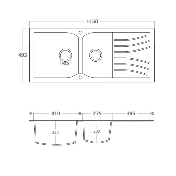 • Ένθετος συνθετικός νεροχύτης σε λευκό χρώμα, αντιστρεφόμενος