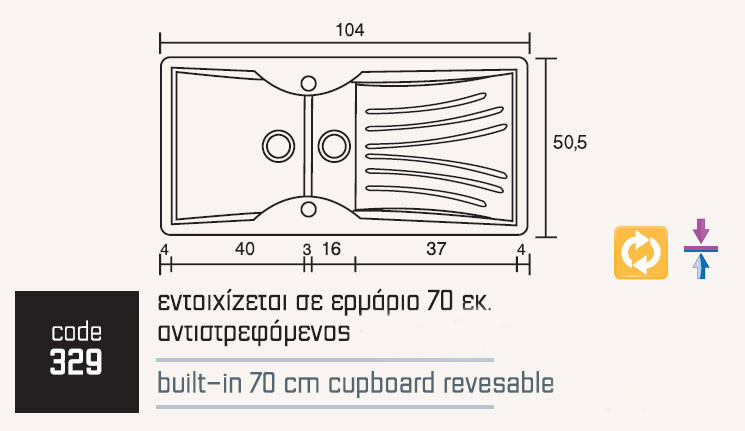 • Ένθετος συνθετικός νεροχύτης σε λευκό χρώμα, αντιστρεφόμενος