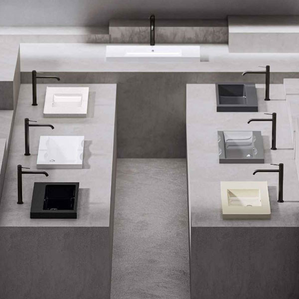 • Νιπτήρας επίπλου μπάνιου, από συνθετικό τεχνογρανίτη, με λεία και γυαλιστερή επιφάνεια, ανθεκτική στην αντίξοη χρήση (χτυπήματα, σκληρά απορρυπαντικά)