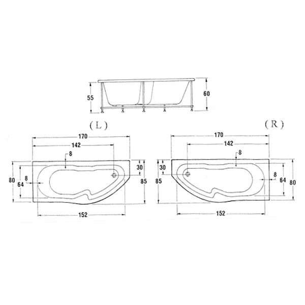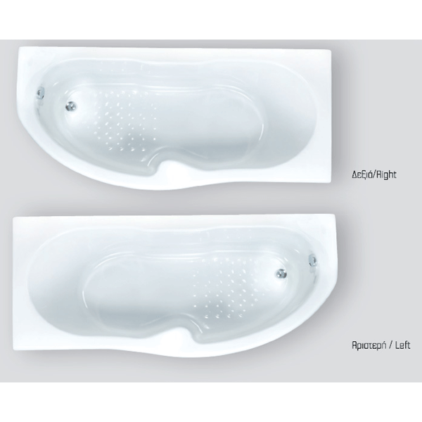 • Μπανιέρα ακρυλική ασύμμετρη από ακρυλικό φύλλο πάχους 5 mm εξαιρετικά ευχάριστο στην αφή, αντιολισθητικό δάπεδο και με επιλογή σε αριστερή ή δεξιά