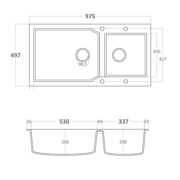 • Ένθετος νεροχύτης αντιστρεφόμενος με συμπαγές σώμα από 80% ορυκτό χαλαζία με χρώμα Bianco