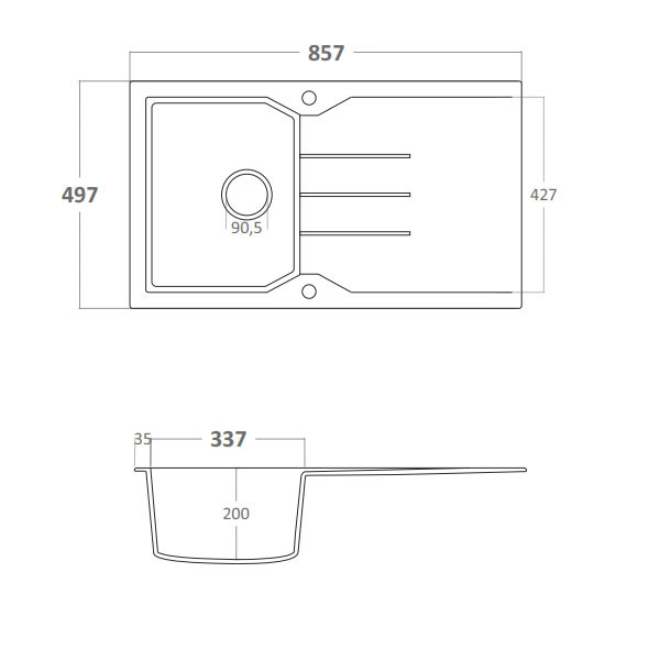 • Ένθετος νεροχύτης αντιστρεφόμενος με συμπαγές σώμα από 80% ορυκτό χαλαζία με χρώμα Bianco