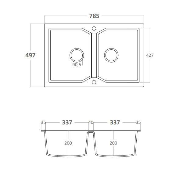 • Ένθετος νεροχύτης αντιστρεφόμενος με συμπαγές σώμα από 80% ορυκτό χαλαζία με χρώμα Ocra