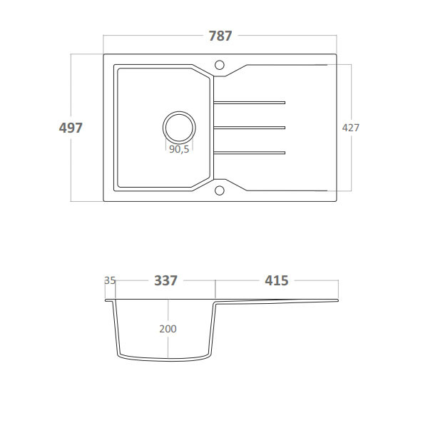 • Πάγκος: 41,3 Χ 49,7 cm
