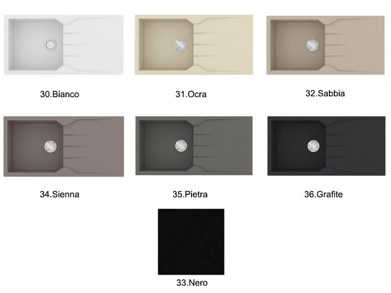 • Ένθετος νεροχύτης αντιστρεφόμενος με συμπαγές σώμα από 80% ορυκτό χαλαζία με χρώμα Bianco