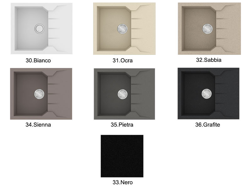 • Ένθετος νεροχύτης αντιστρεφόμενος με συμπαγές σώμα από 80% ορυκτό χαλαζία