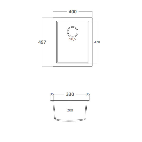 • Ένθετος νεροχύτης με συμπαγές σώμα από 80% ορυκτό χαλαζία