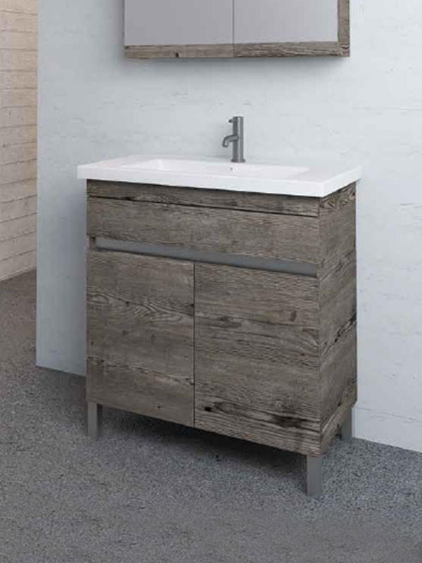 • Πάγκος δαπέδου με δύο πορτάκια κι ένα συρτάρι soft close (αργό κλείσιμο), από M.D.F με επένδυση laminate, σε χρώμα smokey grey