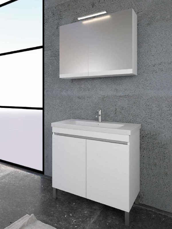 • Πάγκος δαπέδου με δύο πορτάκια soft close (αργό κλείσιμο), από M.D.F με επένδυση laminate, σε χρώμα pure white (με νερά ξύλου)
