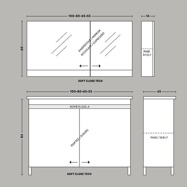 • Καθρέπτης ARIEL 65 κρεμαστός, κρυφοντούλαπο με δύο πορτάκια soft close (αργό κλείσιμο), από M.D.F με επένδυση laminate, σε χρώμα pure white (με νερά ξύλου)