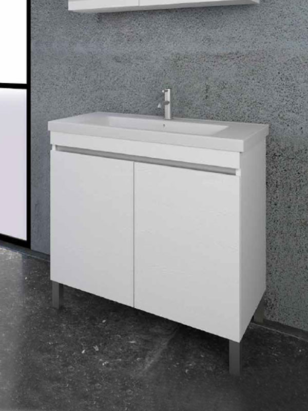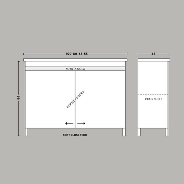 • Πάγκος δαπέδου με δύο πορτάκια soft close (αργό κλείσιμο), από M.D.F με επένδυση laminate, σε χρώμα pure white