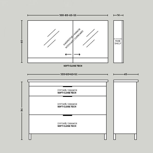 • Διάσταση (Μ x Π x Υ): 100 x 45 x 84 cm