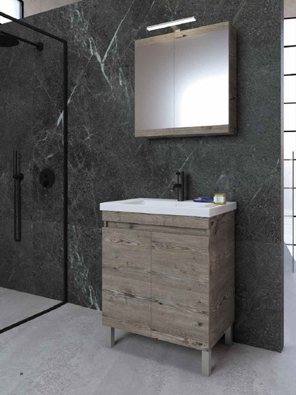 • Πάγκος δαπέδου με δύο πορτάκια soft close (αργό κλείσιμο), από M.D.F με επένδυση laminate, σε χρώμα smokey grey