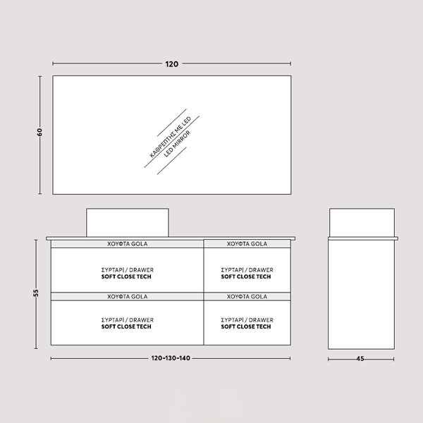 • Διάσταση (Μ x Π x Υ): 140 x 45 x 55 cm