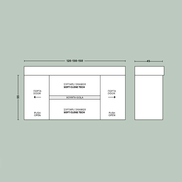 • Διάσταση (Μ x Π x Υ): 120 x 45 x 55 cm