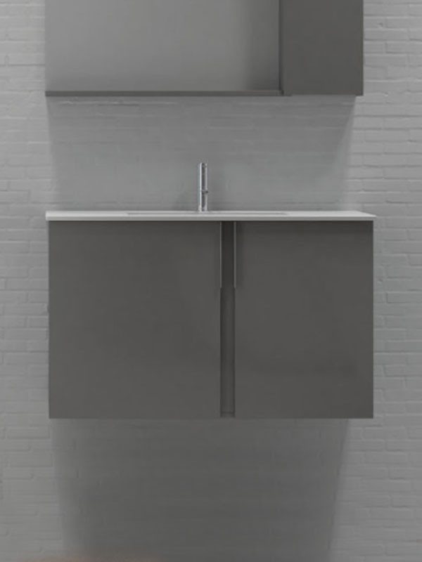 • Πάγκος κρεμαστός 4244 με ενιαίο αποθηκευτικό χώρο, με ένα ράφι και δύο πορτάκια με soft close (αργό κλείσιμο), από M.D.F 16 mm με επένδυση laminate, σε χρώμα 8763 Cemento
