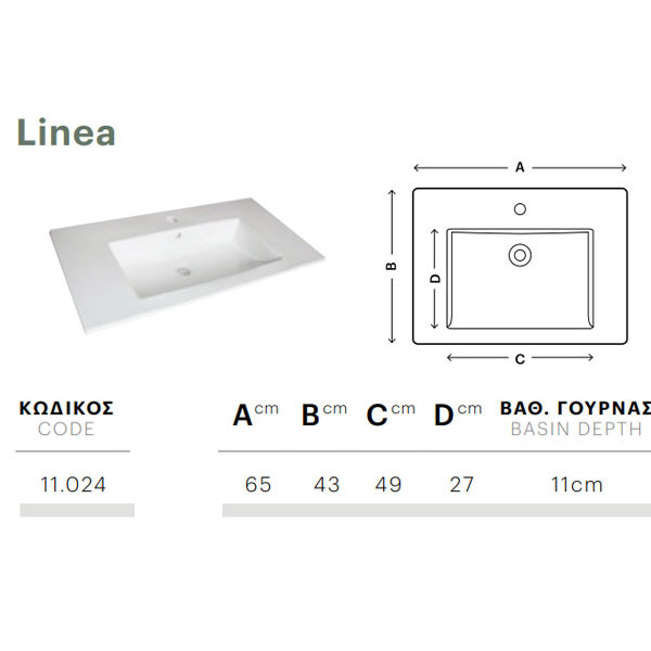 • Νιπτήρας Linea 65 πορσελάνη λευκή