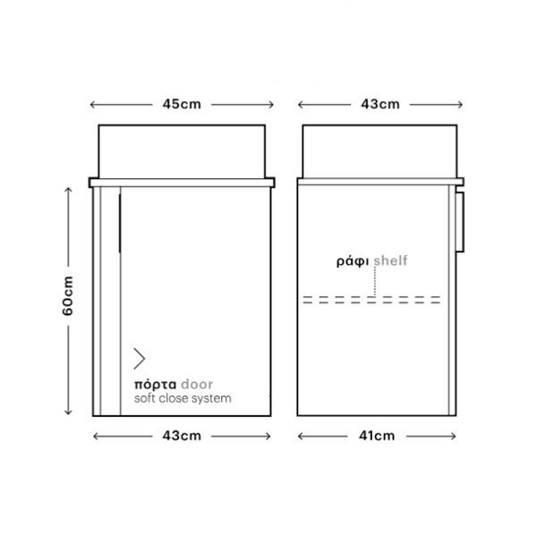• Διάσταση (Μ x Π x Υ): 45 x 43 x 60 cm