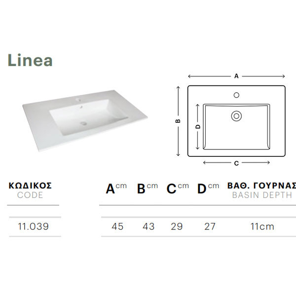 • Νιπτήρας Linea 45 πορσελάνη λευκή