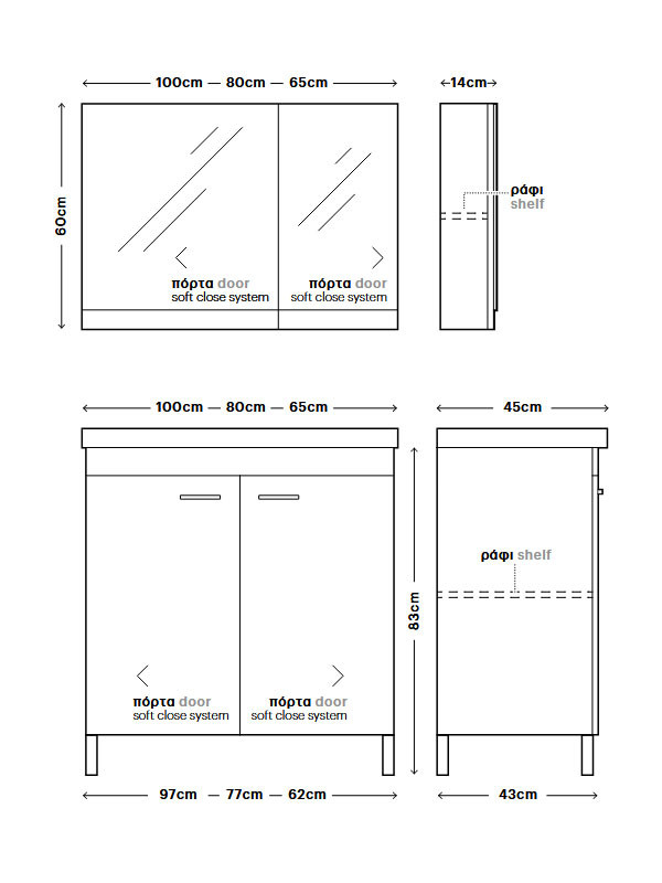 • Διάσταση (Μ x Π x Υ): 62 x 43 x 83 cm