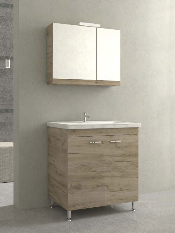 • Πάγκος δαπέδου 796818 με ενιαίο αποθηκευτικό χώρο, με ένα ράφι και δύο πορτάκια με soft close (αργό κλείσιμο), από M.D.F 16 mm με επένδυση laminate, σε χρώμα 8002 Grey Craft