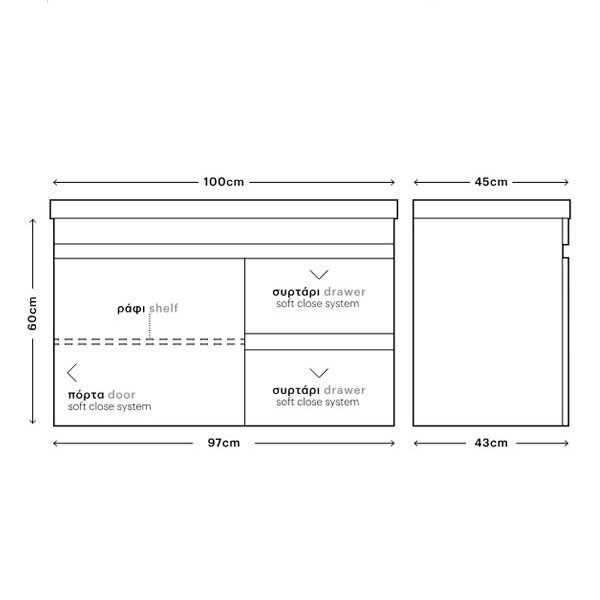 • Διάσταση (Μ x Π x Υ): 97 x 43 x 60 cm