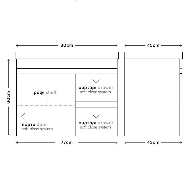 • Διάσταση (Μ x Π x Υ): 77 x 43 x 60 cm
