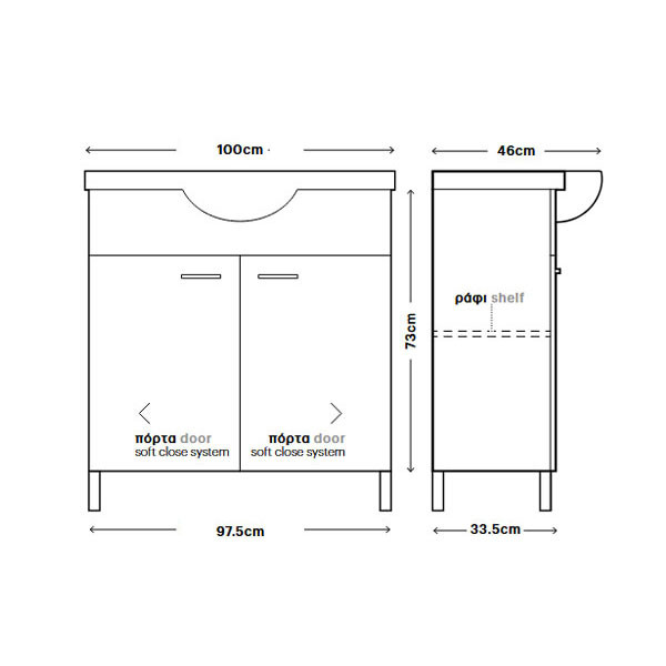 • Διάσταση (Μ x Π x Υ): 97,5 x 33,5 x 73 cm