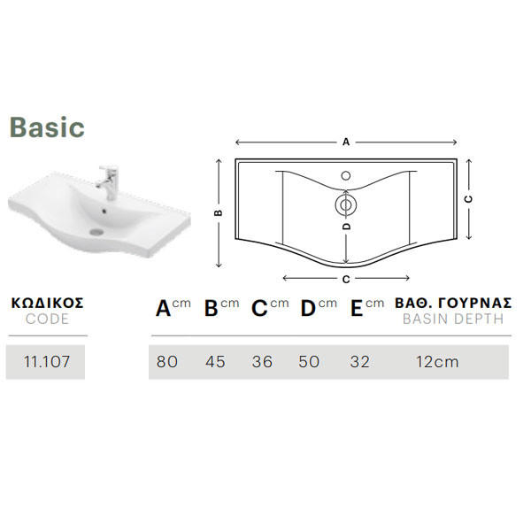 • Νιπτήρας Basic 80 πορσελάνη λευκή