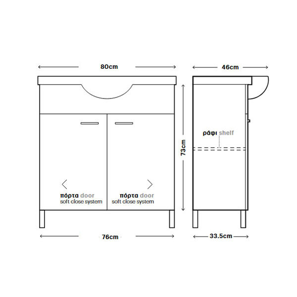 • Διάσταση (Μ x Π x Υ): 76 x 33,5 x 73 cm