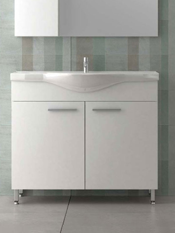 • Πάγκος δαπέδου 6744 με ενιαίο αποθηκευτικό χώρο, με ένα ράφι και δύο πορτάκια με soft close (αργό κλείσιμο), από M.D.F 16 mm σε χρώμα 9102 λευκή γυαλιστερή λάκα
