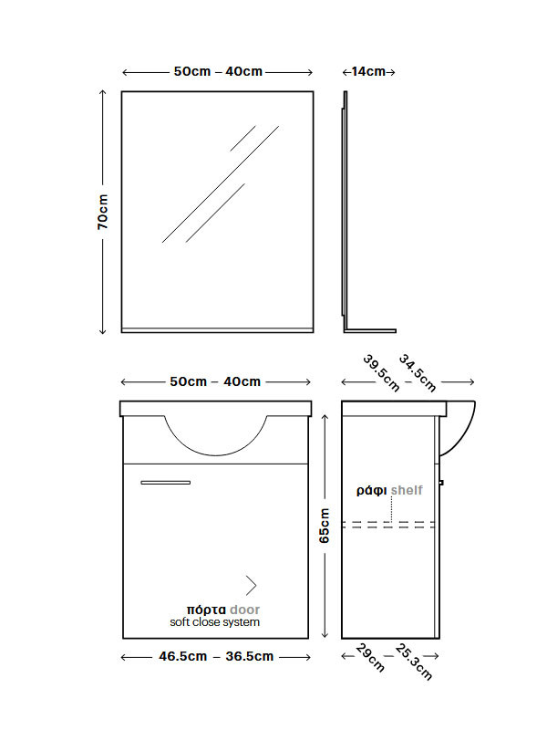 • Στην τιμή δεν συμπεριλαμβάνονται: το φωτιστικό και η μπαταρία του νιπτήρα